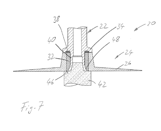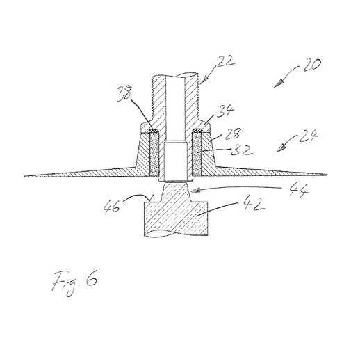 - Manchon de renfort (32) : En plastique renforcé de fibres (ex. : fibres de verre ou carbone), intégré dans la partie externe pour ancrer solidement la tige de valve métallique (22).