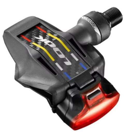 - Poids plume : 270 g la paire (230 g pour les pédales + 40 g pour les lumières), grâce à l’utilisation de carbone et de céramique, réduisant la masse en rotation pour une meilleure accélération et efficacité.
