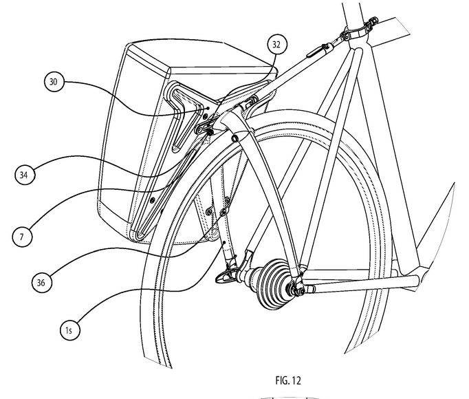 - Un adaptateur en forme de barre horizontale (FIG. 14, 17) permet d’utiliser des sacoches classiques (avec crochets) sur ce rack innovant.